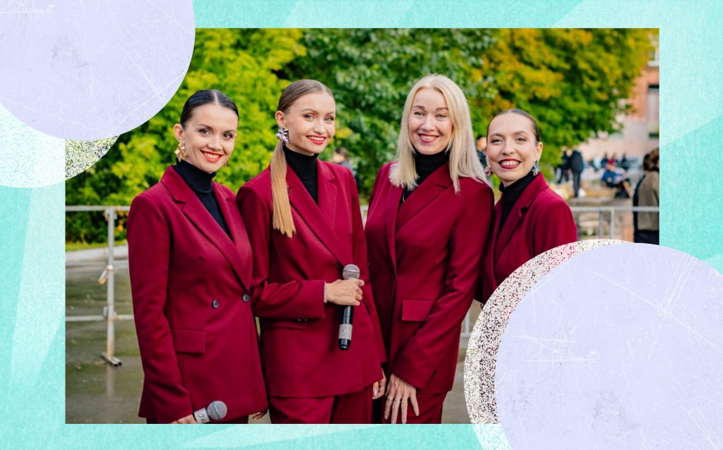 На одной сцене с Дарьей и Владимиром также блистал вокальный квартет студии современной музыки Online из Новоуральска. Уникальность этого коллектива в том, что его участницы — настоящая семья. Руководитель студии Елена Максимова уже 20 лет работает с Натальей Веденкиной — их связывает крепкий творческий союз. А Екатерину Моргунову и Валерию Гриненко Елена знает с шести лет: они ее бывшие ученицы.