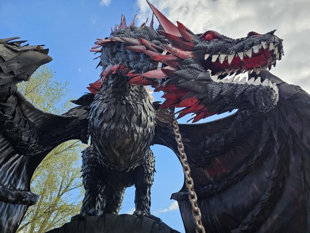 В Волгодонске появился новый ориентир, который сложно не заметить. На Цимлянском шоссе автомобили встречает шестиметровый дракон с размахом крыльев почти в пять метров. Сделан он из автомобильных шин — фирменный почерк автора.