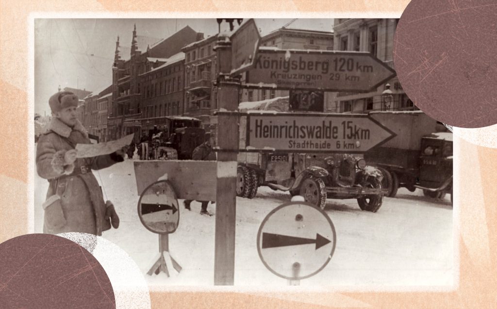 А такой указатель успели зафиксировать в 1945 году. Да, все в том же Тильзите, который станет Советском через полгода-год после того, как был сделан снимок.
