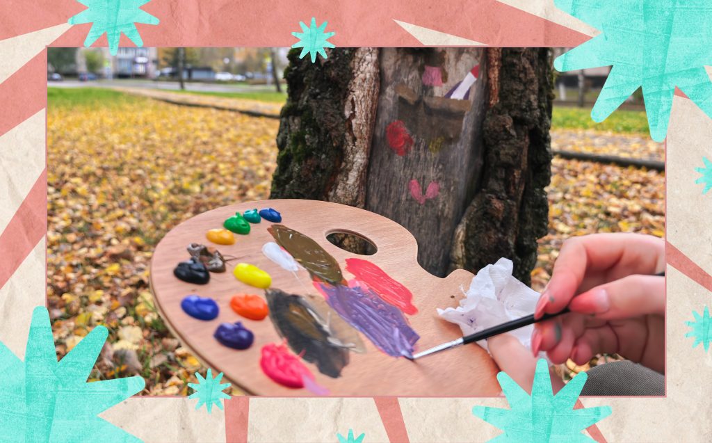 В день самого мероприятия сначала организаторы встретились с юными художниками, показали им «холсты» — деревья с лунками. Ребята-художники сами выбрали, кому какую тему рисовать и набросали эскиз, чтобы участникам было легче рисовать. Ведь лунки-то все разные. «Одна была вообще в форме сердца, эскиз сам уже напрашивался», — комментирует Юлия.