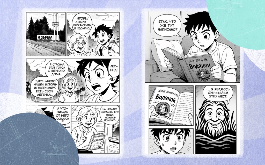 Бренд Водяного я встроила в проект, над которым работаю сейчас, — это манга про наш город. Она объединяет в себе научный туризм, художественную историю и жизнь простого мальчика, который живет в Удомле.