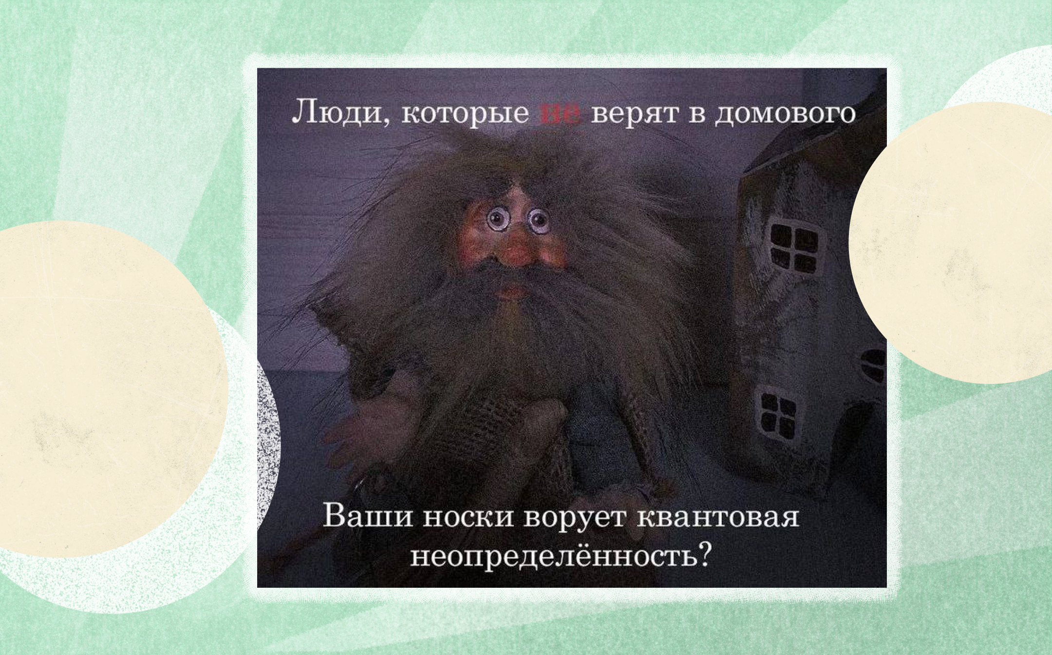 Данный мем — это блестящий пример научного юмора. Он противопоставляет простое объяснение (домовой) весьма сложному (квантовая физика), доводя последнее до абсурда. Смысл в том, что иногда проще поверить в сказку, чем вникать в квантовые дебри», — объясняетНикита Ашурко.