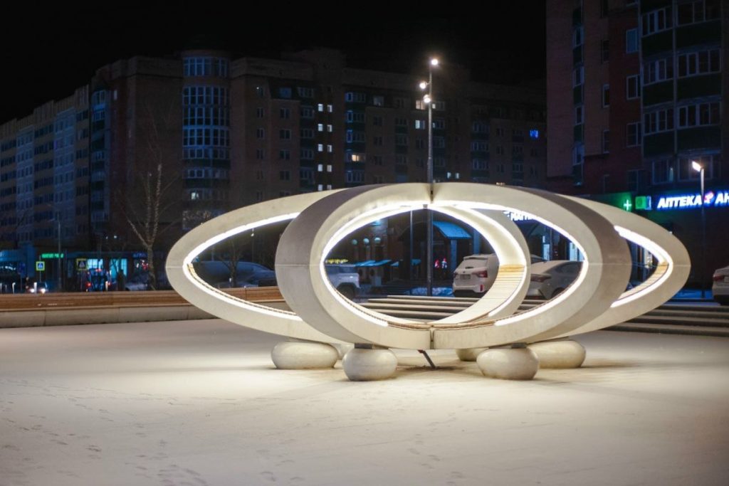 Форма скамьи отсылает к модели атома с электронными орбиталями — образу, который давно закрепился в визуальной культуре атомградов. При этом объект остается практичным. Здесь можно присесть, встретиться с друзьями или просто дождаться автобуса. Современное благоустройство строится именно на этом балансе: эстетика усиливает удобство, а не вступает с ним в конфликт.