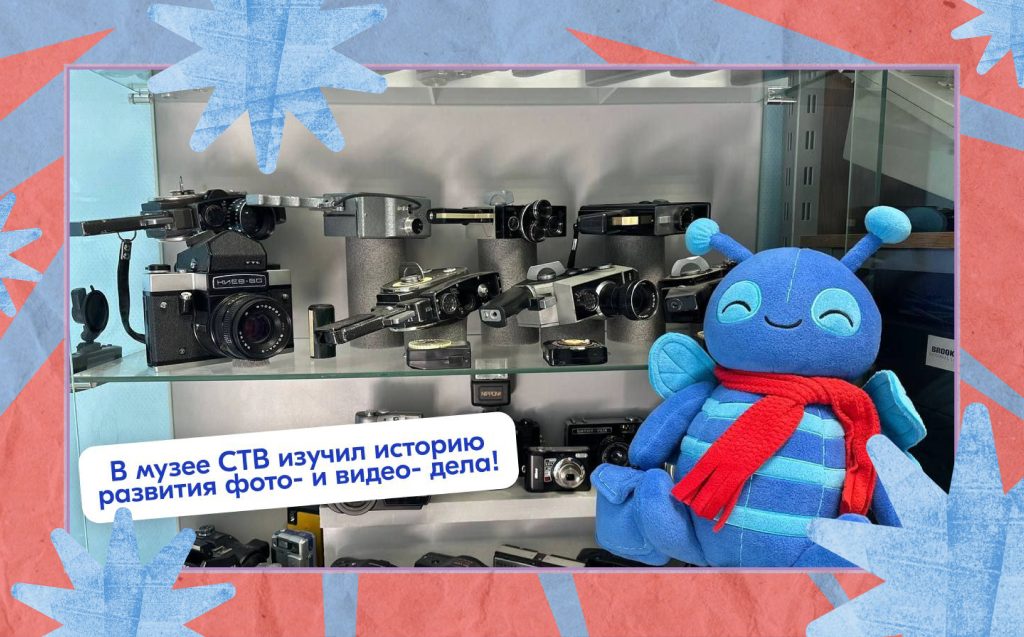 Сентябрьским утром заглянул на Ленинградскую АЭС: здесь я и дозиметр в лапках подержал, и каску примерил, и «Вестник ЛАЭС» изучил — жужжательно интересно! Но больше всего мне запомнился поход, а точнее — полет, на сосновоборский телеканал СТВ. Я оказался в настоящей съемочной студии под прицелом камер, которых, кстати, в редакции было так много, что глаза разбегались. В музее СТВ собрана целая коллекция фото- и видеотехники, созданной больше века назад. Вот это раритет! Я жужжал от восторга: каждый экспонат — кладезь медиа-истории.