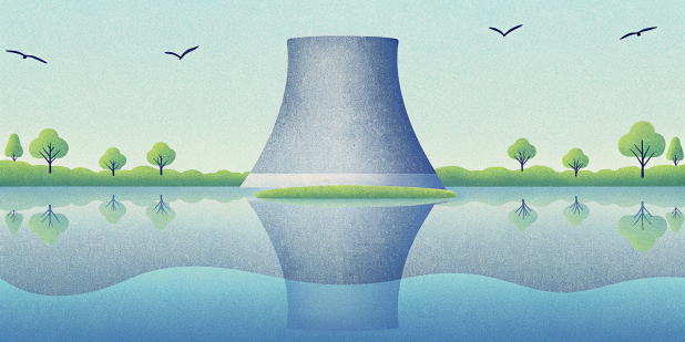 - Прямоточная система — вода забирается из реки или озера, прогоняется через теплообменники и возвращается обратно чуть теплой. Так работает Кольская АЭС. Но у этого варианта есть минус: если лето жаркое, станции приходится снижать мощность, чтобы не перегревать реки. Так случалось во Франции — за последние 20 лет целых пять раз!