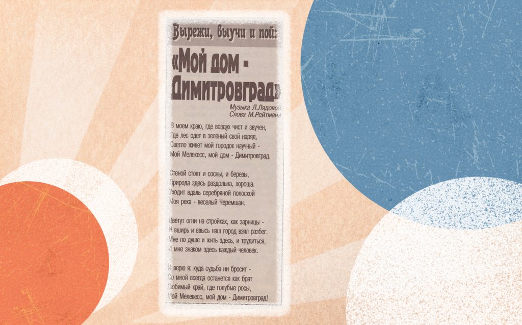 До 2005 года гимном Димитровграда была песня «Мой дом — Димитровград» (музыка Л. Лядовой, слова М. Рейтмана).