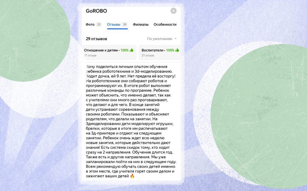 Потом на глаза случайно попалась реклама клуба GoROBO. Попробовали связаться с владельцем Эльдаром Ихласовым и обговорить дальнейшее сотрудничество. Дальше мы заключили договор и начали работать под брендом GoROBO. Франшиза была известной, уже работали клубы в Санкт-Петербурге и Москве — не пришлось создавать и развивать свое имя. Директор передал все необходимые методики для обучения, регламенты, и мы стали программой дополнительного образования.
