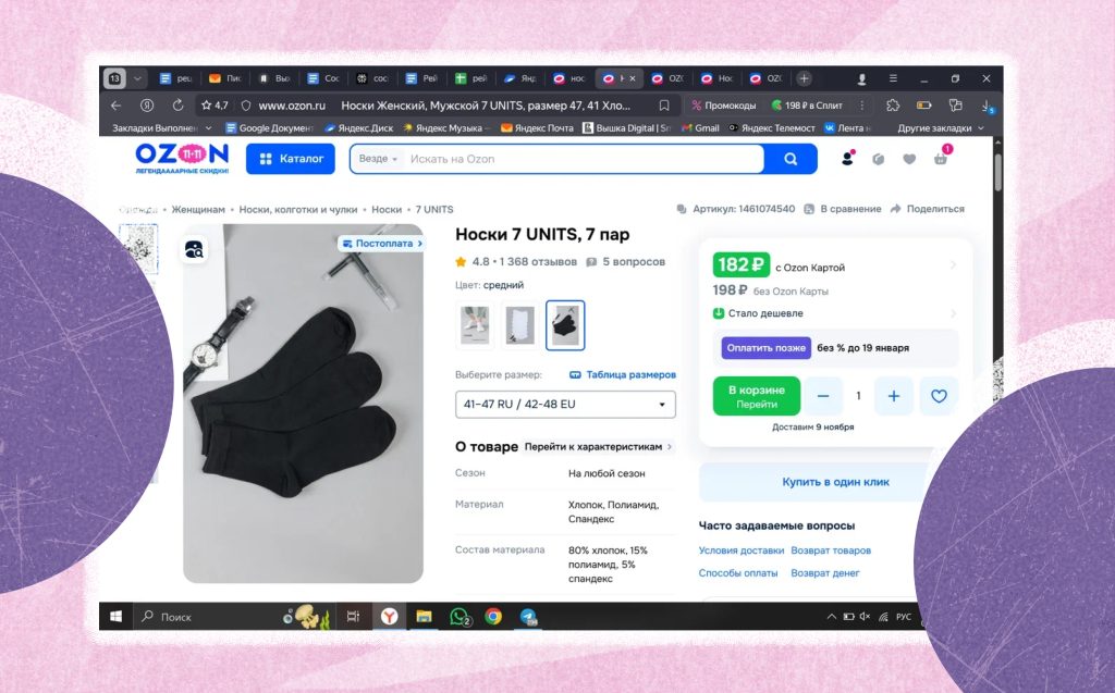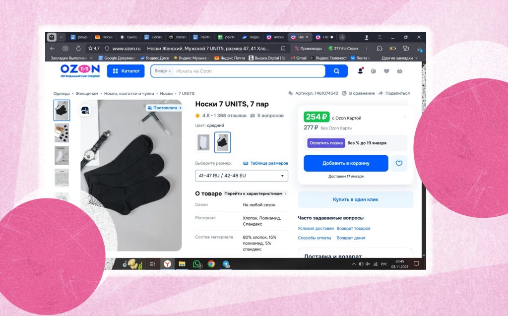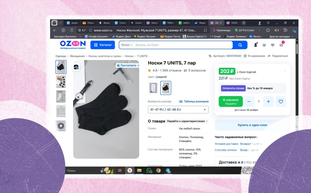 Мы уже выяснили, что сложнее всего с доставкой в Энергодаре и Билибине — там пунктов выдачи нет вообще. Проверим, сколько придется ждать в разных городах самые обычные носки — в Москве, к примеру, они пришли бы на следующий день.