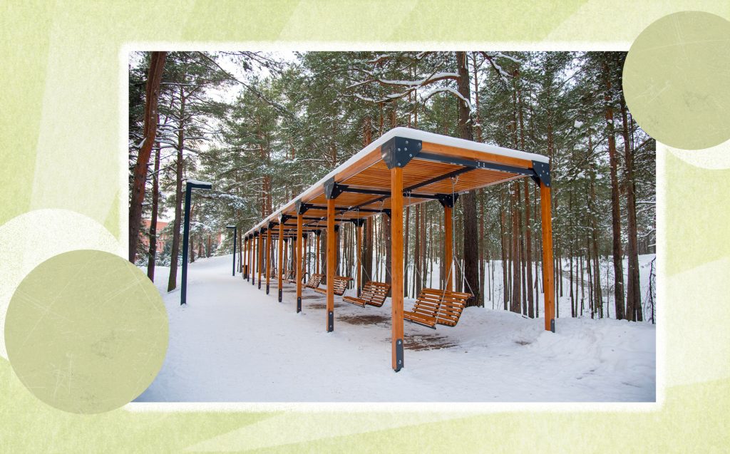 Но и для тихой прогулки в парке «Белые пески» тоже создали все условия: обустроили зоны с деревянным настилом, локации для отдыха с уютными качелями под навесами, навигационные стенды и велопарковки.