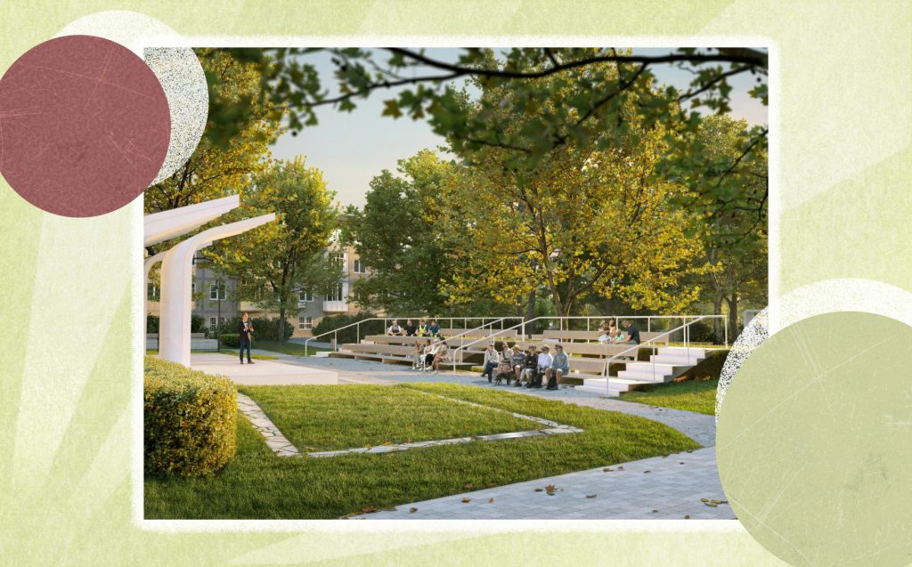 У входа в сквер появится расширенная детская площадка. В аллейной части запланированы места для отдыха и игр в шахматы. Также будут установлены качели. Вблизи ТЮЗа расположится амфитеатр со сценой для выступлений небольшого формата и информационная стойка для будущих городских ярмарок. А для самых романтичных натур оборудуют «места созерцания и отдыха», которые можно будет отыскать рядом с мемориальным камнем и дубом.